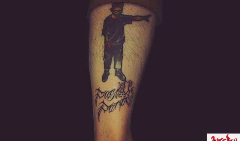 • T包小腿吹火男+阿多福纹身图片_腿部老传统新传统吹火男阿