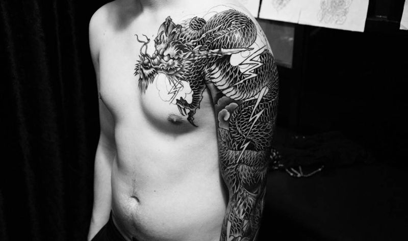 老外的过肩龙纹身图片