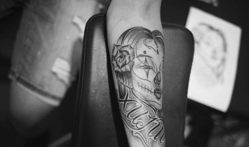 当前位置: 首页 >四川省绵阳市纹身店-幻刺纹身纹身图案>奇卡诺亡灵女郎纹身图片_欧美写实宗教情侣手臂纹身图案