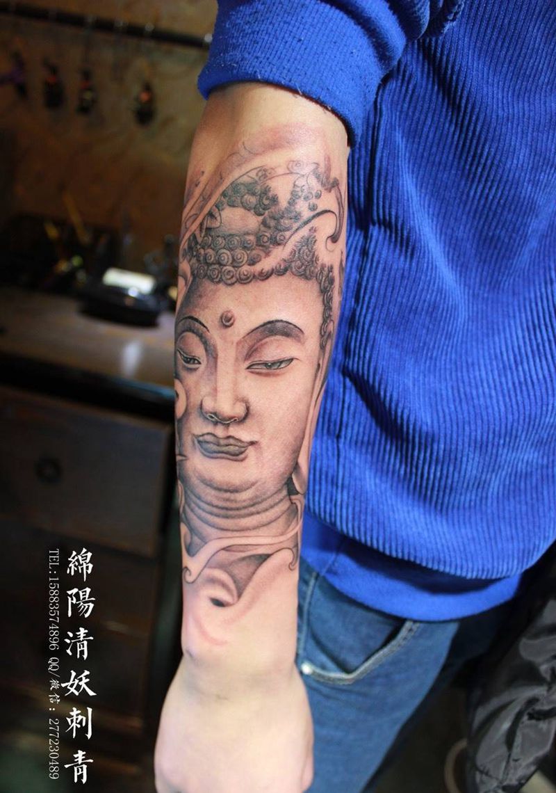 当前位置: 首页 >四川省绵阳市纹身店-绵阳清妖刺青纹身店纹身图案>小臂佛头完工准备下一图了,忙碌的一天呀,照相都照都找模糊了,将就看吧纹身图片