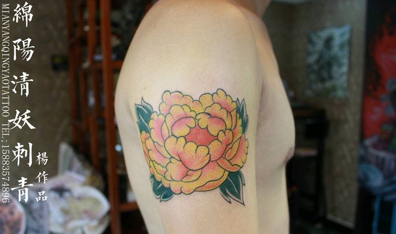 小臂牡丹纹身,顺便问下早上哪位纹身图片_肩部传统写实国画植物成品纹身图案