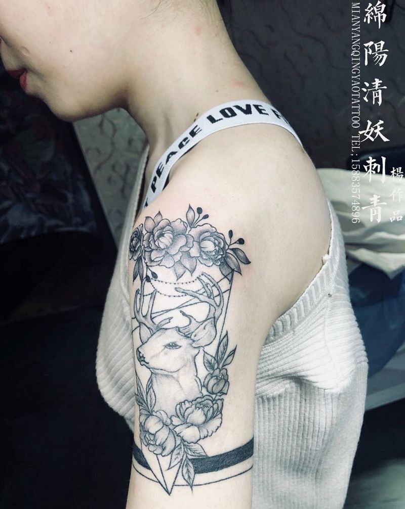 当前位置: 首页 >四川省绵阳市纹身店-绵阳清妖刺青纹身店纹身图案>麋鹿花纹身图片