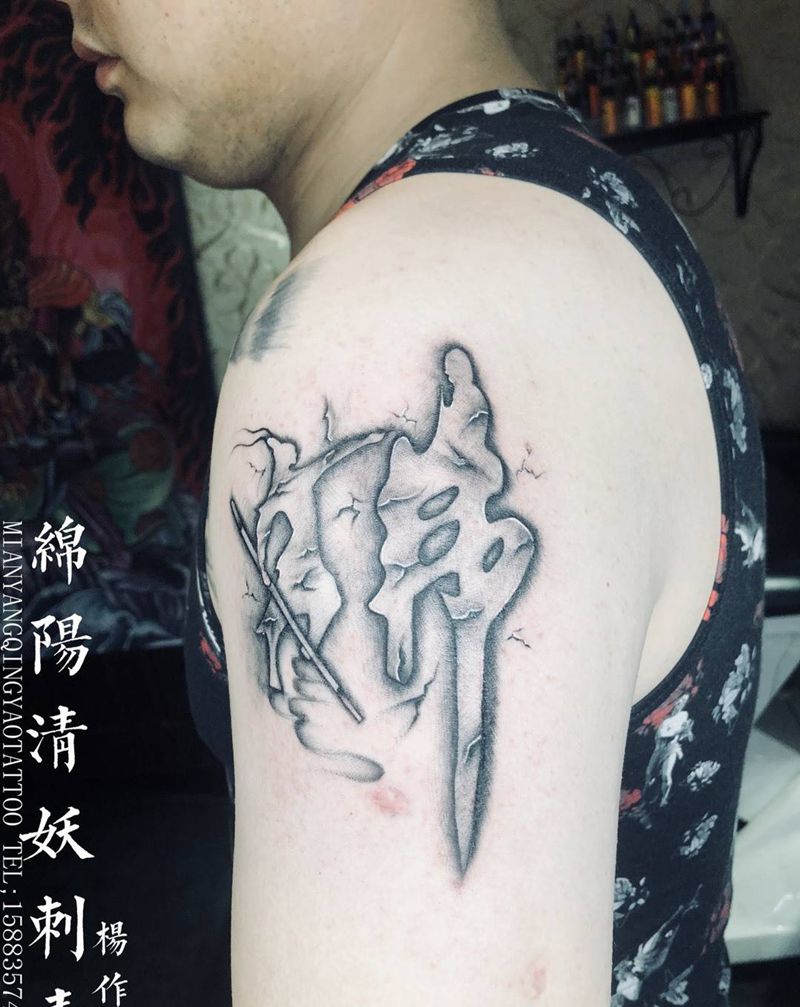当前位置: 首页 >四川省绵阳市纹身店-绵阳清妖刺青纹身店纹身图案>大臂佛字纹身纹身图片