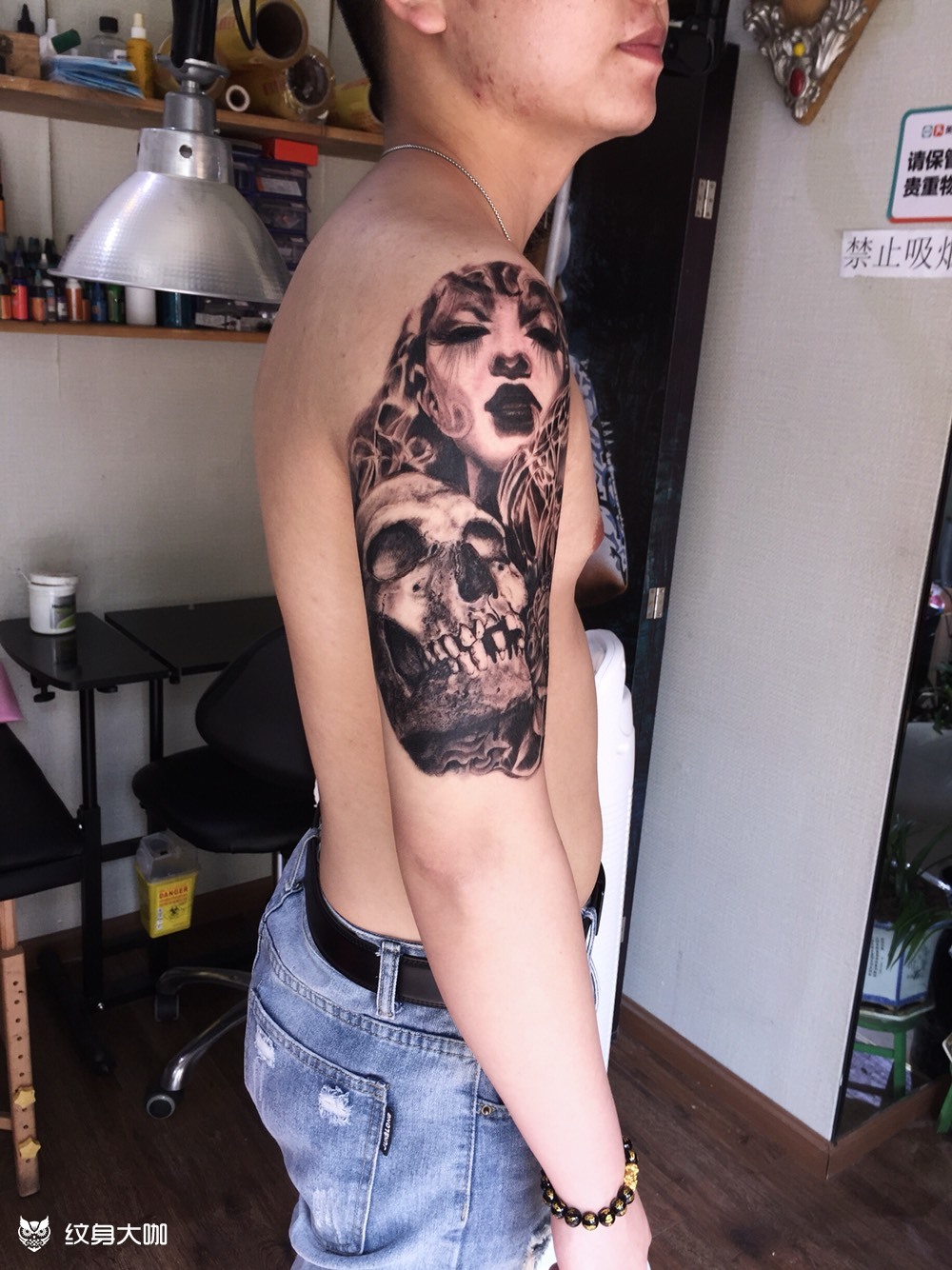 骷髅与美女纹身图片