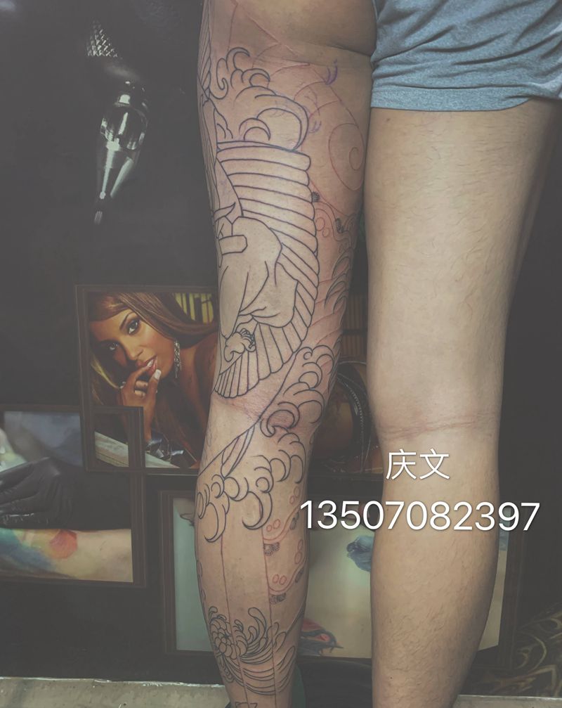 • T网红王老大花腿龙纹身图片_腿部新传统纹身图案