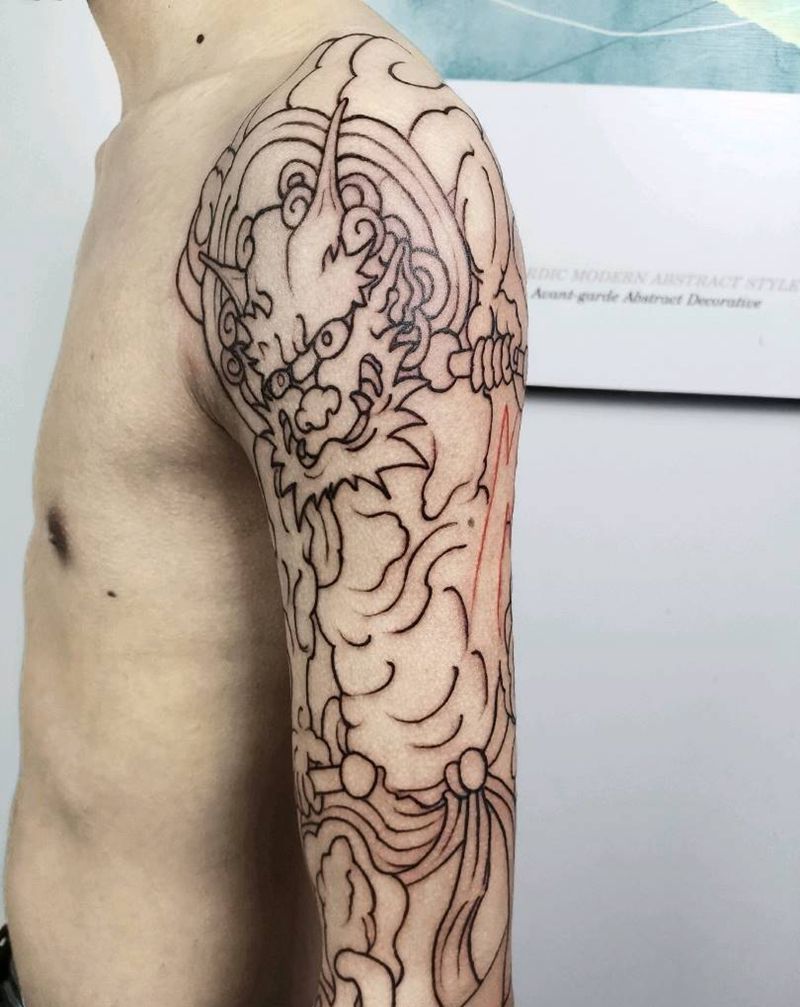 • T云龙九郎纹身图片_背部老传统云龙九郎纹身图案