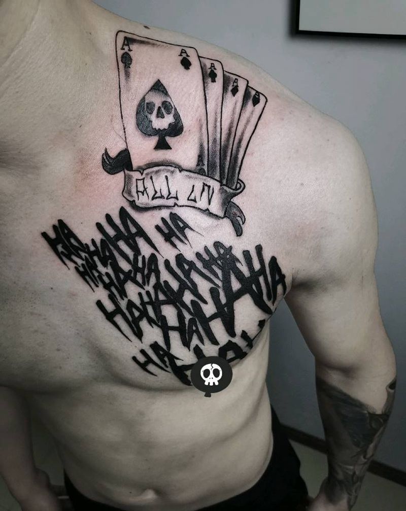 当前位置: 首页 >四川省内江市纹身店-造刺纹身馆纹身图案>哈哈哈纹身图片_胸部Old School小丑纹身图案