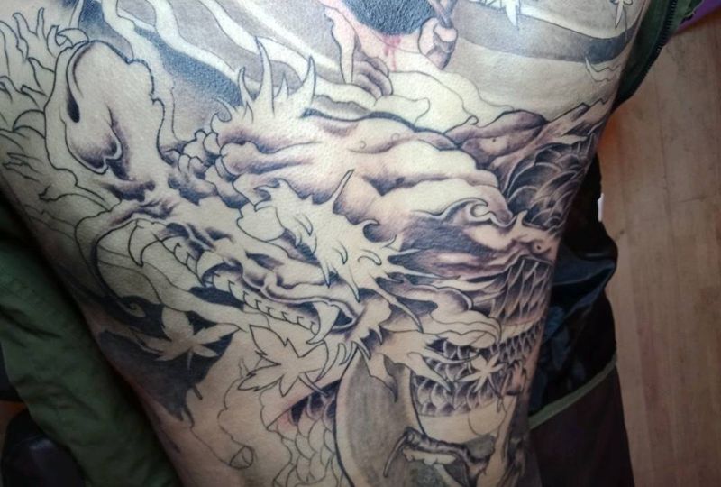当前位置: 首页 >四川省内江市纹身店-造刺纹身馆纹身图案>青龙纹身图片_背部新传统满背 龙纹身图案