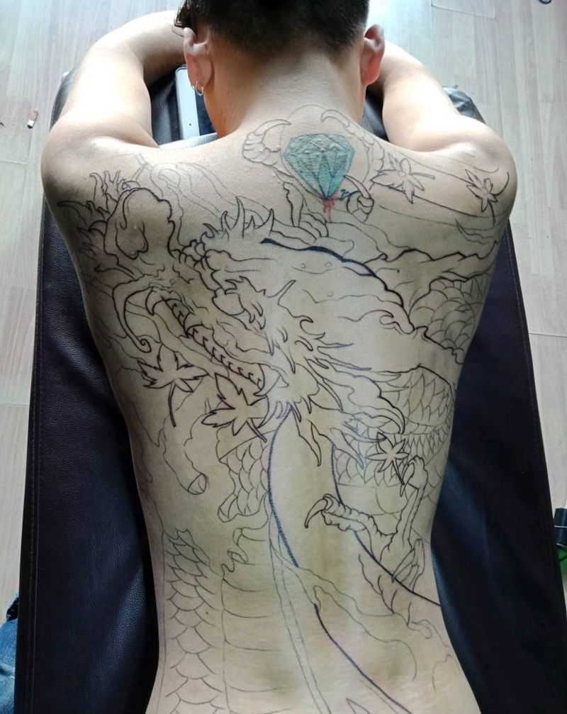 当前位置: 首页 >四川省内江市纹身店-造刺纹身馆纹身图案>青龙纹身图片_背部新传统满背 龙纹身图案
