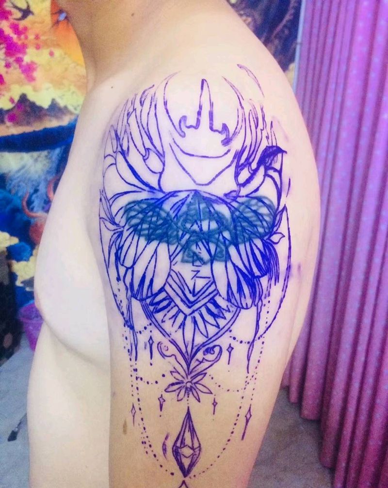 • 纹身吧推荐的披肩图腾半胛纹身图案作品展示