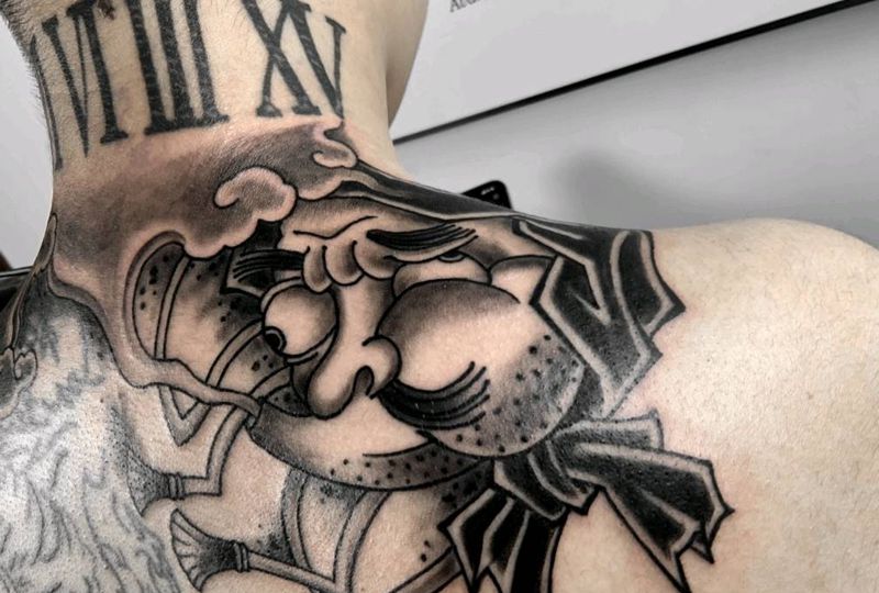 • 纹身吧推荐的披肩图腾半胛纹身图案作品展示