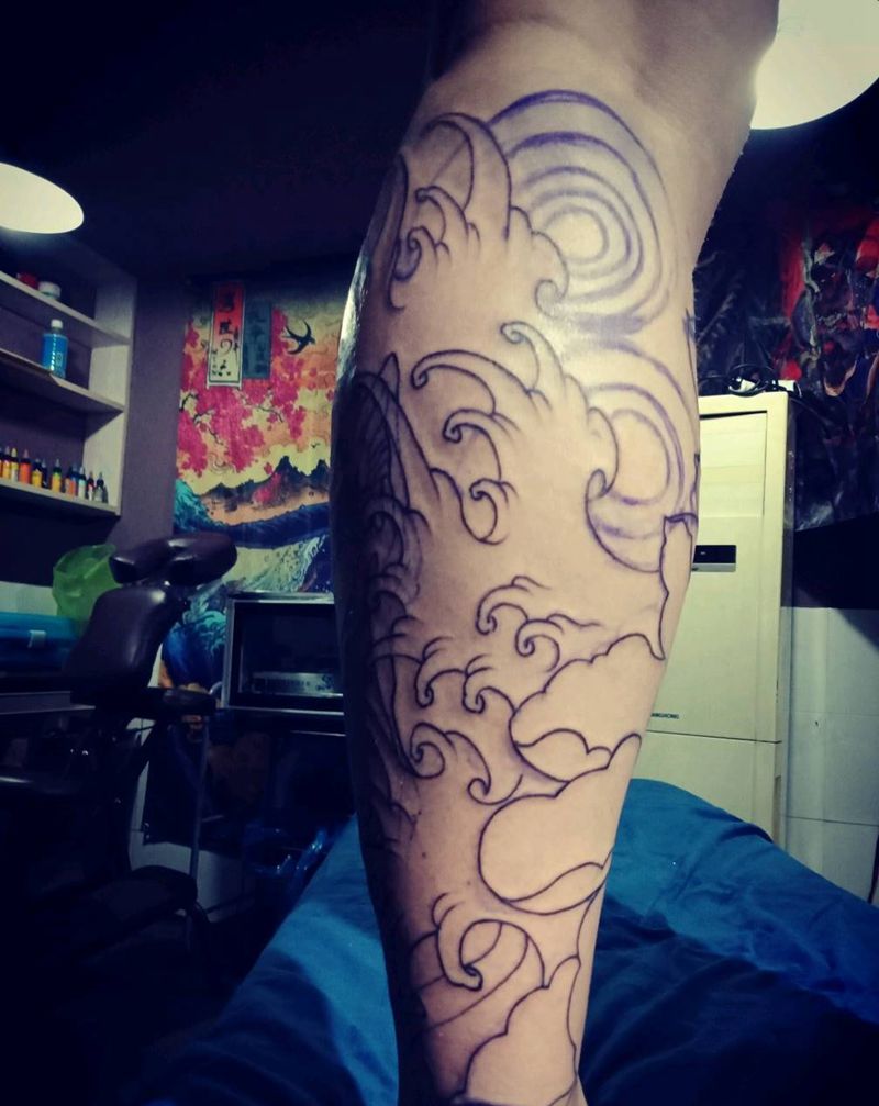 当前位置: 首页 >四川省内江市纹身店-造刺纹身馆纹身图案>花腿局部线条纹身图片_腿部新传统纹身图案