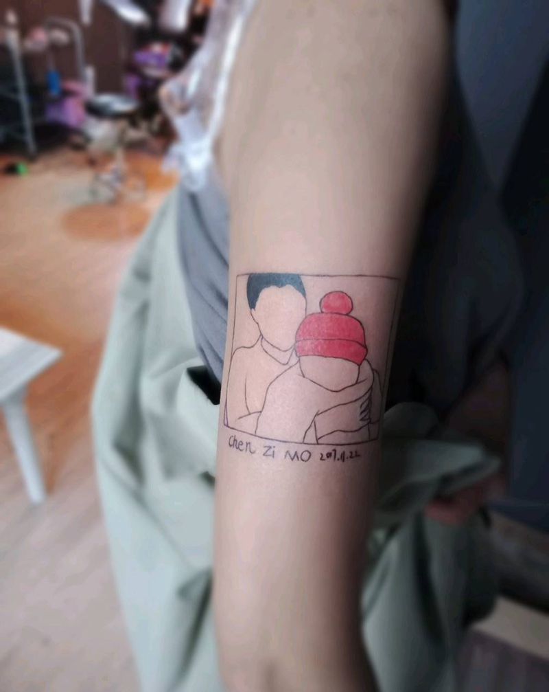 • T家庭图,一家四口生日纪念!纹身图片_手臂纹身图案