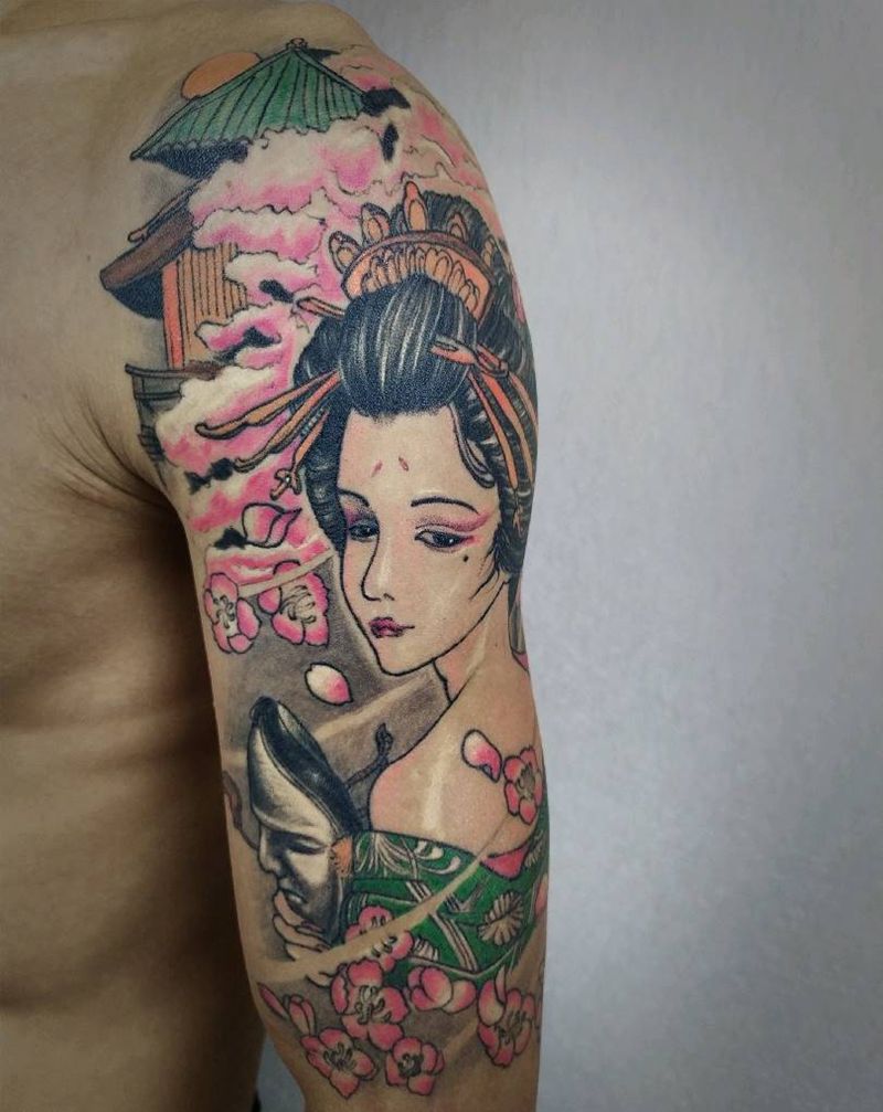 艺妓纹身图片_手臂新传统艺妓 传统纹身图案