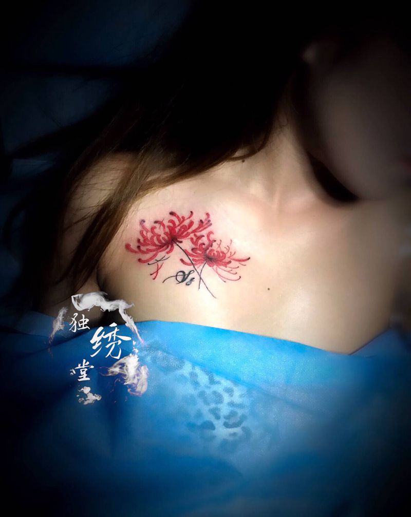 • 女性大花胸纹身_43张霸气漂亮的女性大花胸纹身图案作品