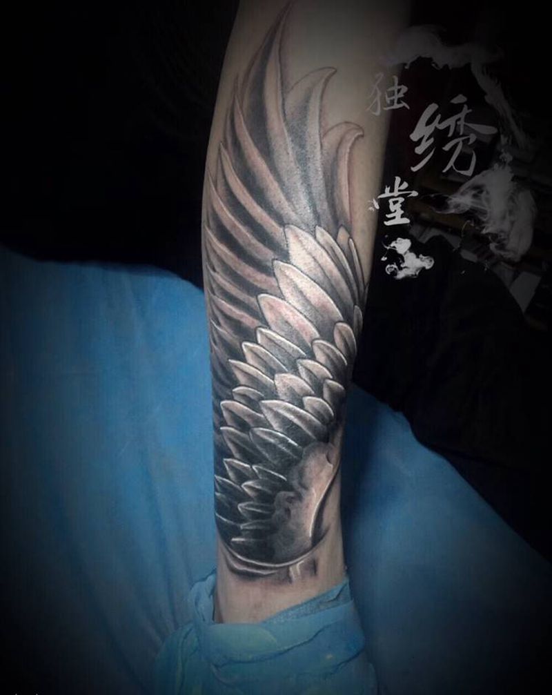 翅膀纹身图片_腿部纹身图案