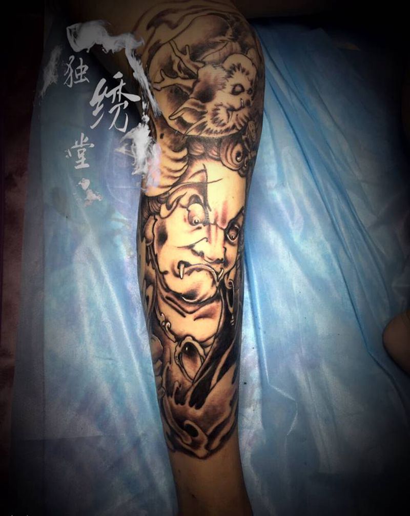 当前位置: 首页 >四川省南充市纹身店-独绣堂刺青纹身图案>不动明王包小腿纹身图片_腿部纹身图案