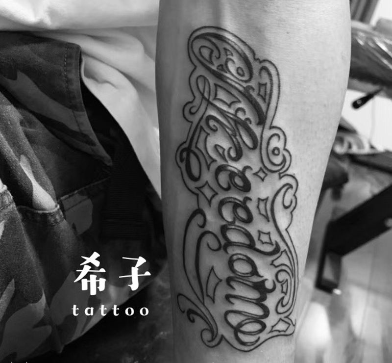 当前位置: 首页 >四川省眉山市纹身店-七野刺青纹身图案>花体字纹身图片_手臂纹身图案