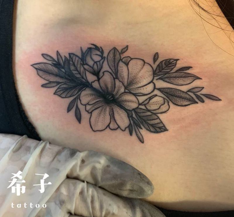 • 女性大花胸纹身_43张霸气漂亮的女性大花胸纹身图案作品