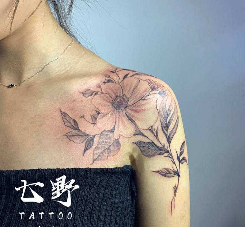 韩式素花纹身图片_肩部纹身图案