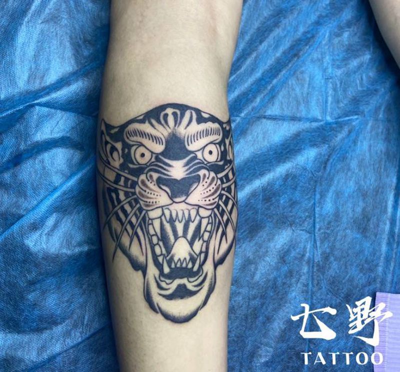 • T包小腿吹火男+阿多福纹身图片_腿部老传统新传统吹火男阿
