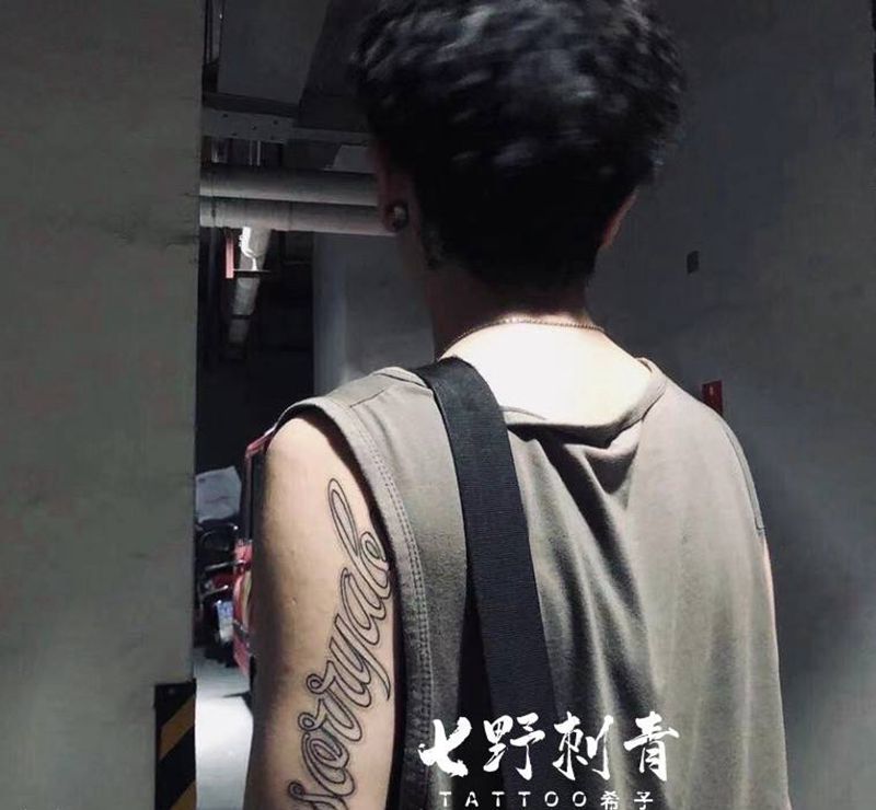当前位置: 首页 >四川省眉山市纹身店-七野刺青纹身图案>花体设计纹身图片_手臂花体字纹身图案