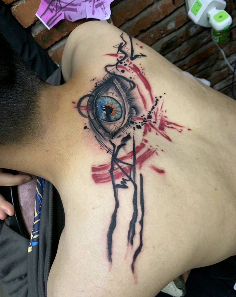 睡意都眼睛纹身图片_背部新传统水墨纹身图案