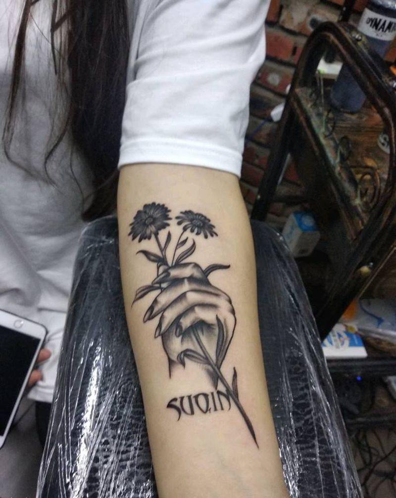当前位置: 首页 >四川省广安市纹身店-安·刺青纹身图案>手握菊花纹身图片_手臂新传统纹身图案