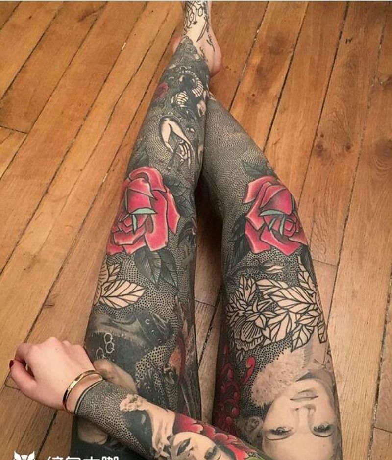 • T网红王老大花腿龙纹身图片_腿部新传统纹身图案