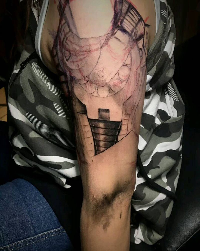 当前位置: 首页 >四川省广安市纹身店-安·刺青纹身图案>机械半臂纹身图片