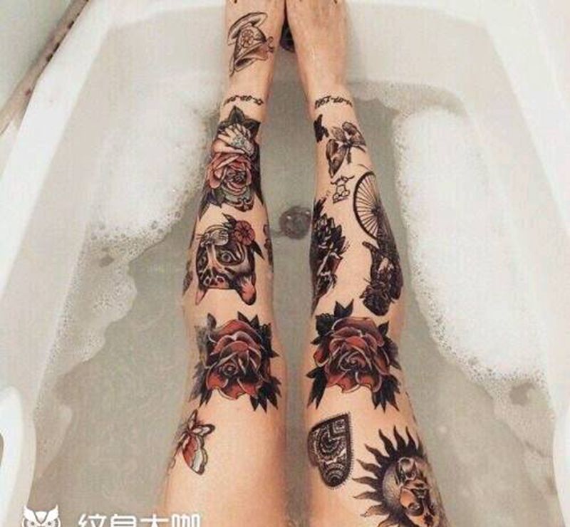 • T网红王老大花腿龙纹身图片_腿部新传统纹身图案
