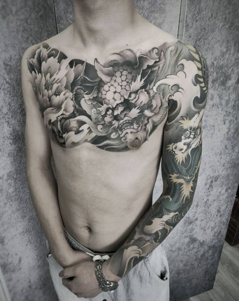 当前位置: 首页 >四川省宜宾市纹身店-宜宾古刺青纹身图案>花臂花胸纹身图片_手臂胸部新传统纹身图案