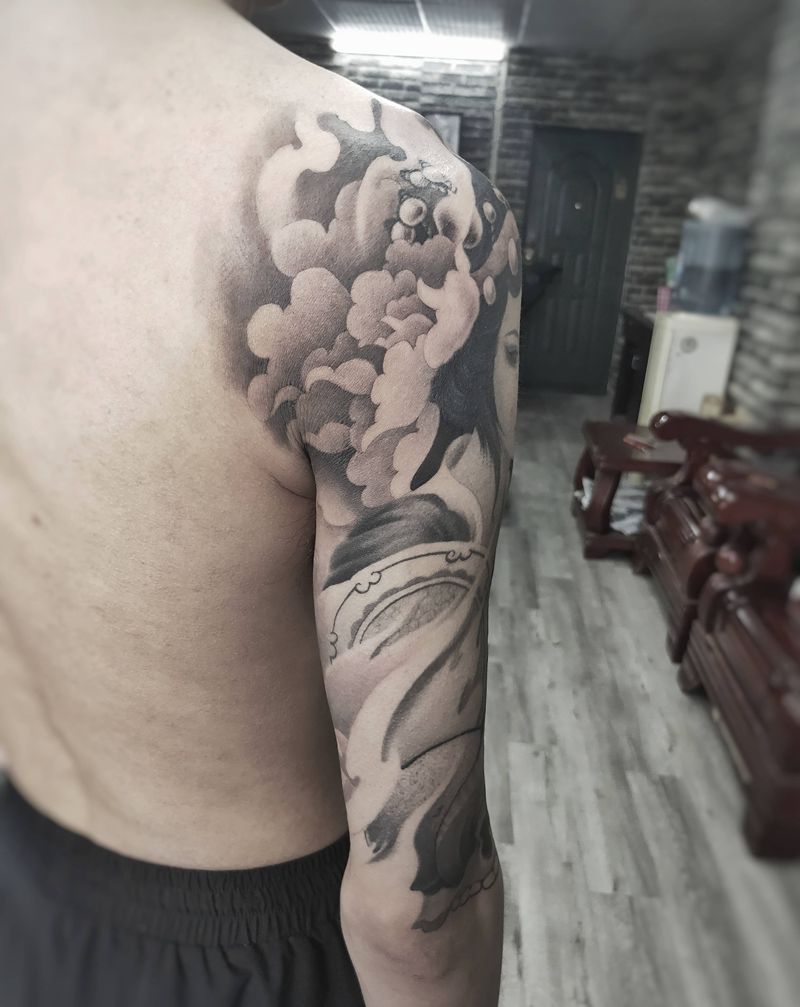 当前位置: 首页 >四川省宜宾市纹身店-宜宾古刺青纹身图案>大臂花旦……纹身图片_手臂新传统纹身图案