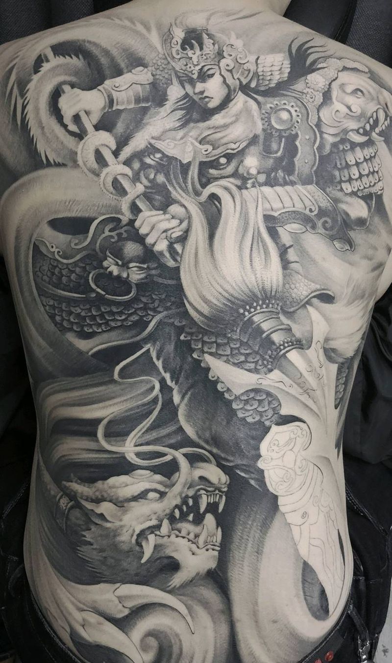 黑灰满背纹身图案