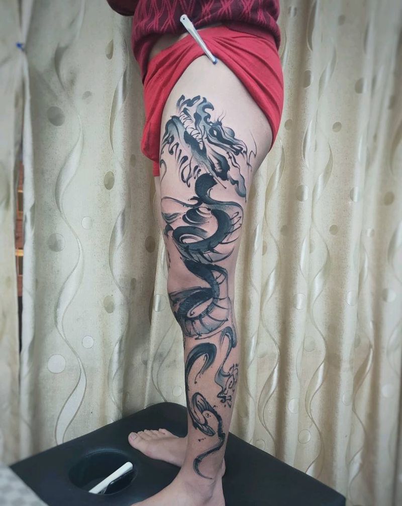 当前位置: 首页 >四川省宜宾市纹身店-宜宾古刺青纹身图案>水墨龙腿纹身图片_腿部水墨纹身图案