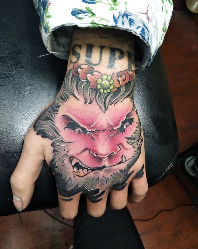 当前位置: 首页 >四川省宜宾市纹身店-宜宾古刺青纹身图案>手背猴子纹身图片_手部传统肖像人物成品纹身图案