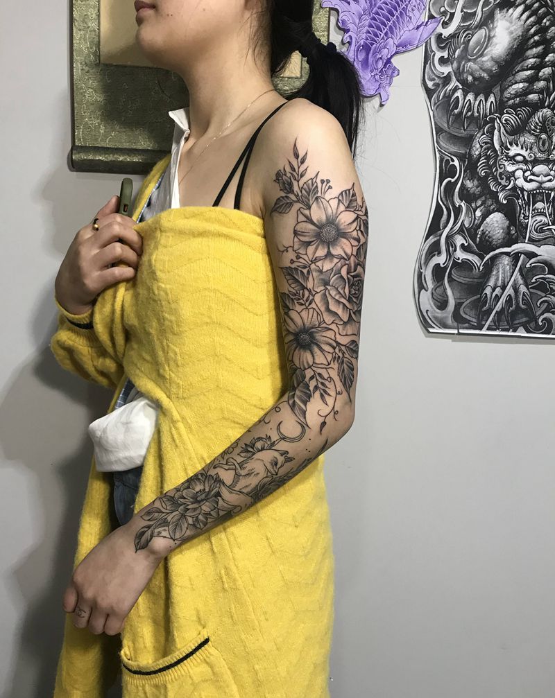 当前位置: 首页 >四川省广安市纹身店-御龙刺青纹身图案>素花花臂纹身图片_新传统纹身图案