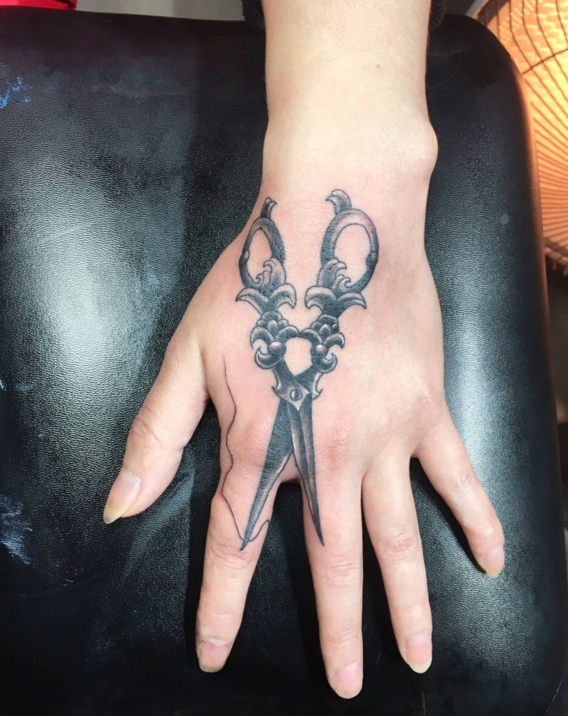 当前位置: 首页 >四川省广安市纹身店-御龙刺青纹身图案>胸花剪刀石头布纹身图片