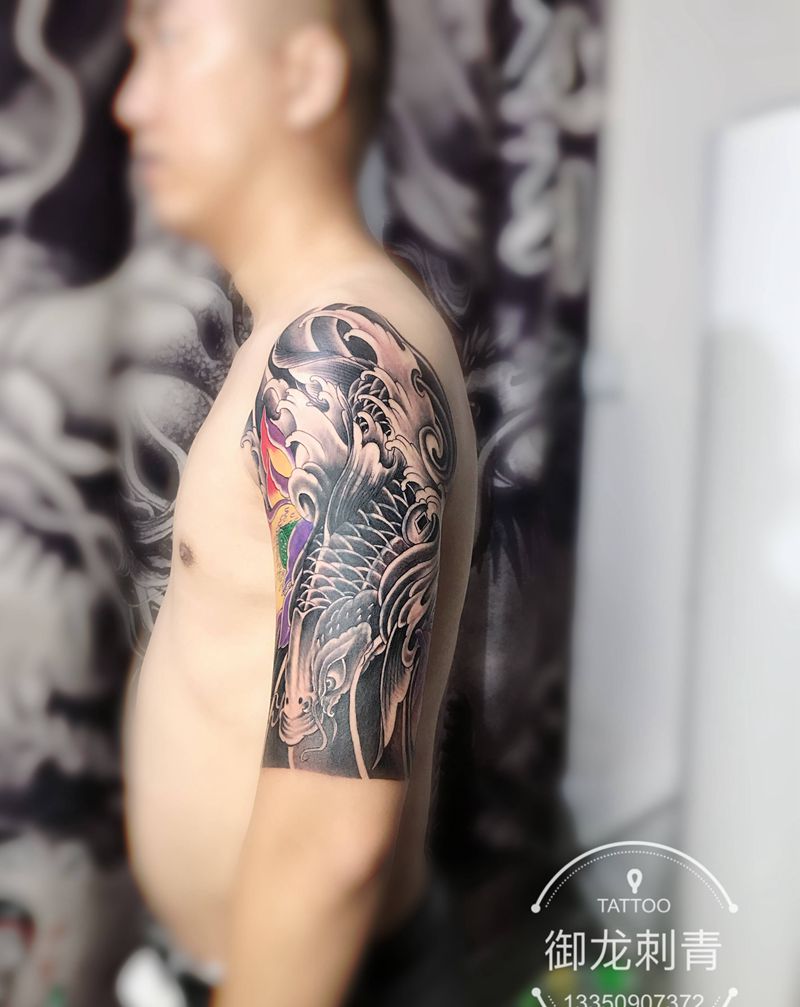 鲤鱼掩盖纹身图片_新传统纹身图案