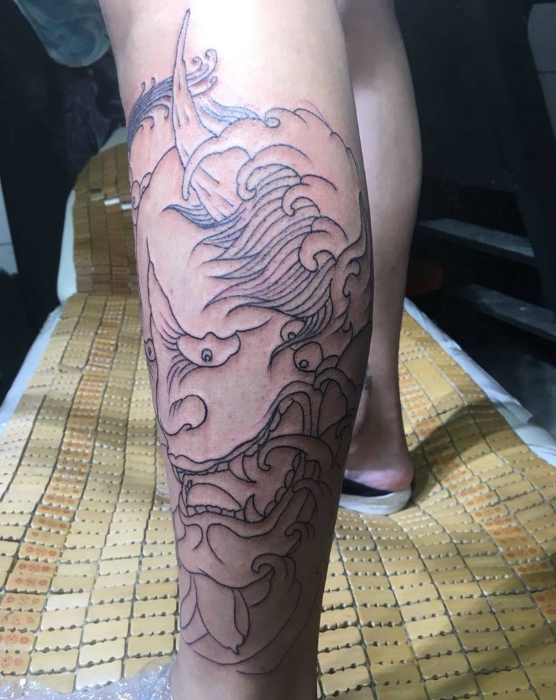 • T网红王老大花腿龙纹身图片_腿部新传统纹身图案