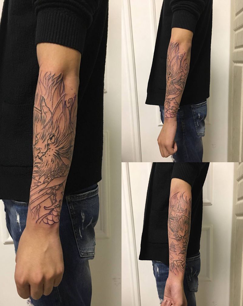 • T网红王老大花腿龙纹身图片_腿部新传统纹身图案