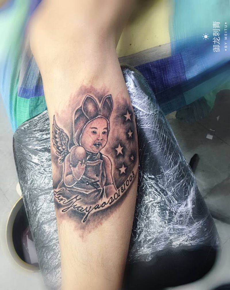 • T家庭图,一家四口生日纪念!纹身图片_手臂纹身图案