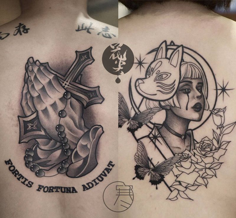 • 黑灰满背纹身图案