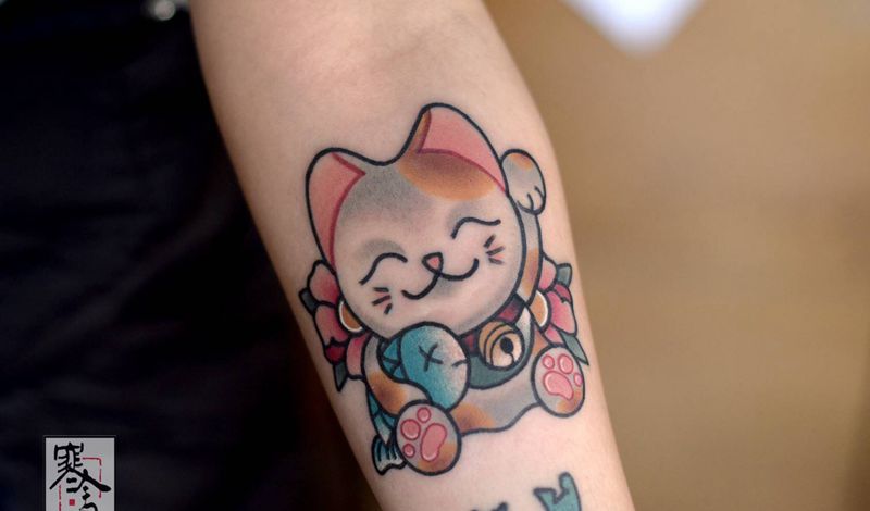 • T招财猫纹身图片