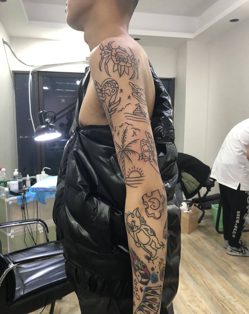 当前位置: 首页 >四川省广安市纹身店-明水刺青纹身图案>Old shool拼接花臂纹身图片_Old School纹身图案