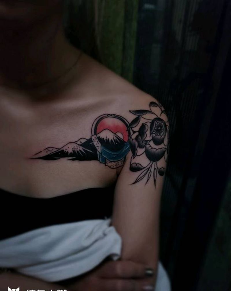 • 女性大花胸纹身_43张霸气漂亮的女性大花胸纹身图案作品