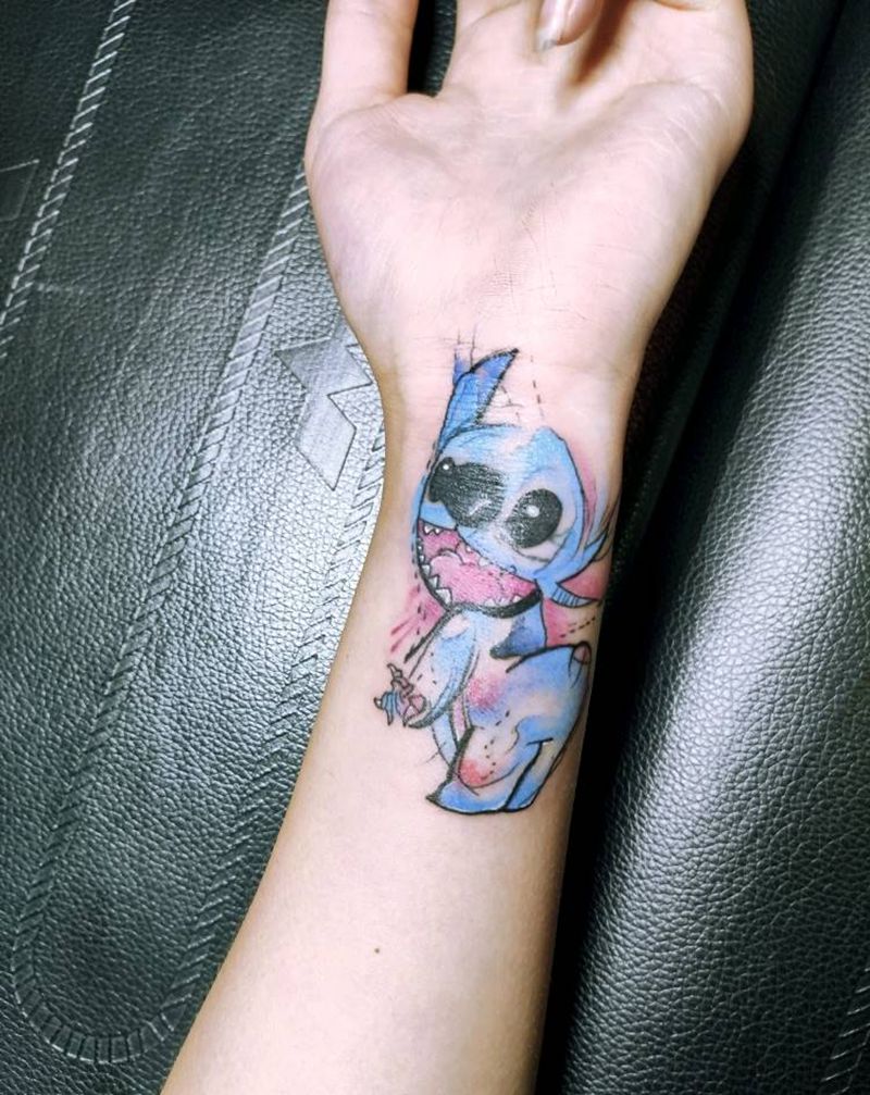 遮盖手腕英文字纹身图片_手部New School水彩纹身图案