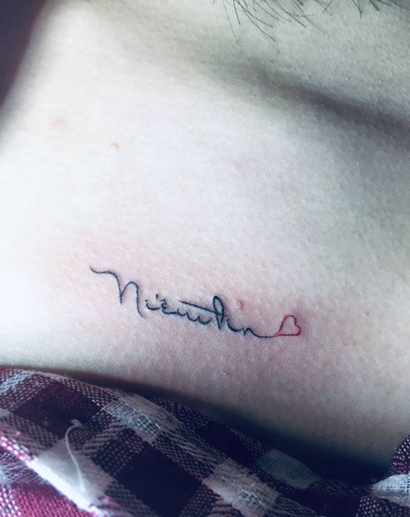 今日小图纹身图片_胸部手臂点刺英文小清新彩色纹身图案