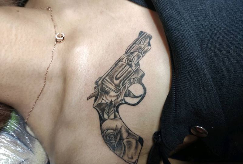 • 女性大花胸纹身_43张霸气漂亮的女性大花胸纹身图案作品