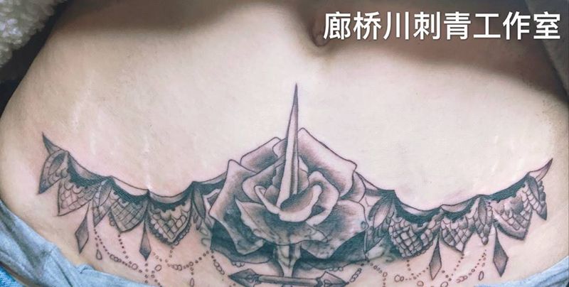 时尚性感的腹部莲花纹